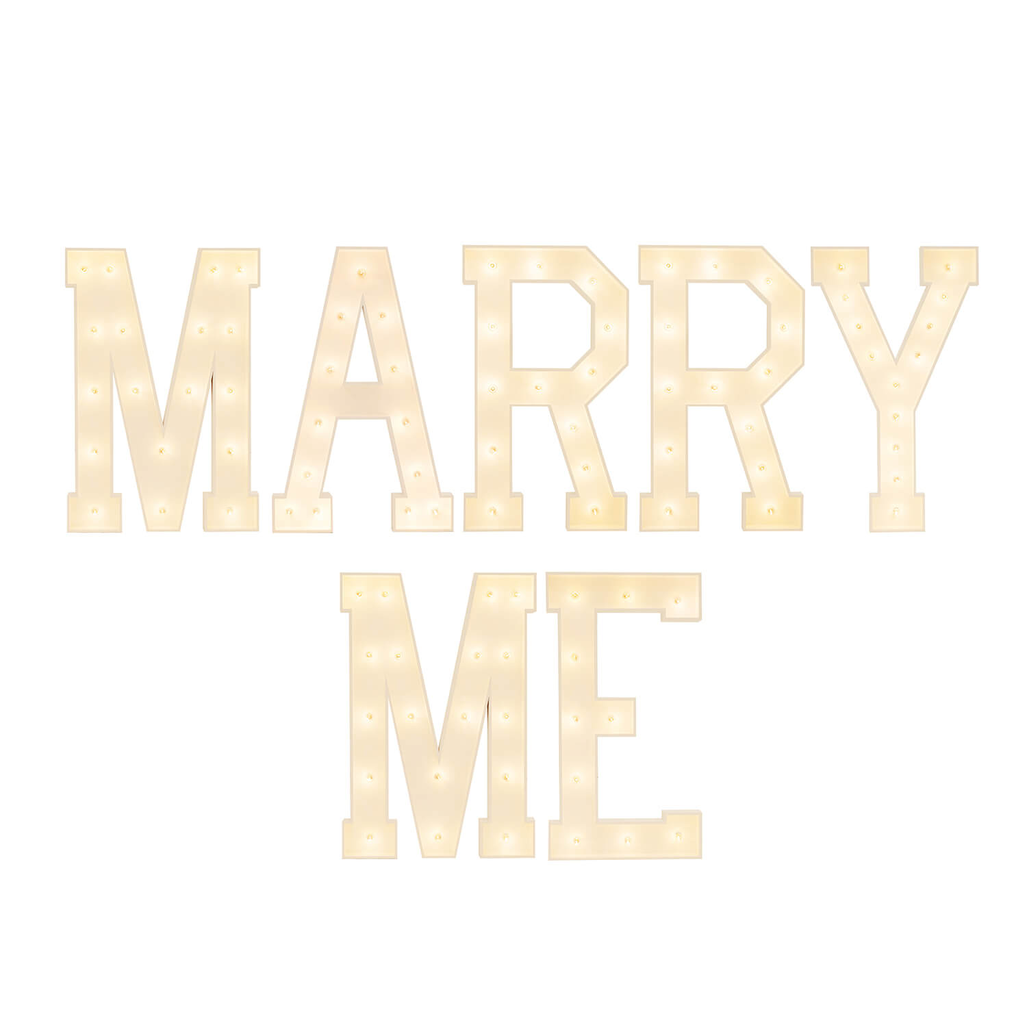 Brighten up your event with this stunning wood marquee sign. They come with warm Edison-style shatter-proof bulbs so they're suitable for a whole assortment of themes, palettes, and spaces. Each letter connects to outlet and can even be daisy chained together for one single connection. Your guests are sure to be dazzled.