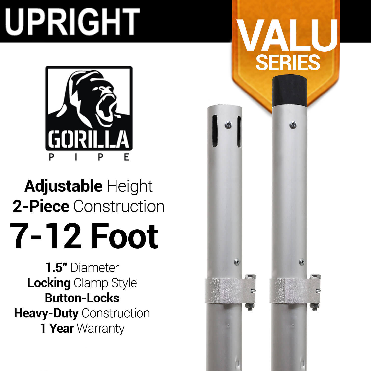 Valu Series - 7-12ft Adjustable Slip-Fit 1.5" Upright