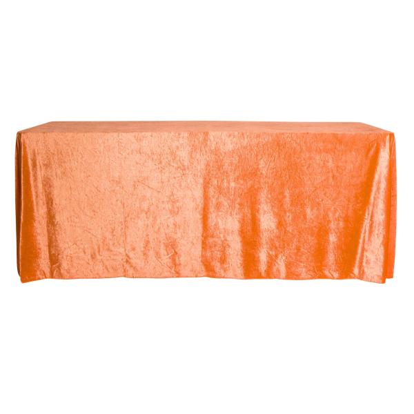 Color: Orange Material: Velvet Size: Approx. 90"x156" Seamless Pack: 1 per polybag Drop: The tablecloth will touch the floor when placed on a 6 foot rectangular table with a 30" standard height.