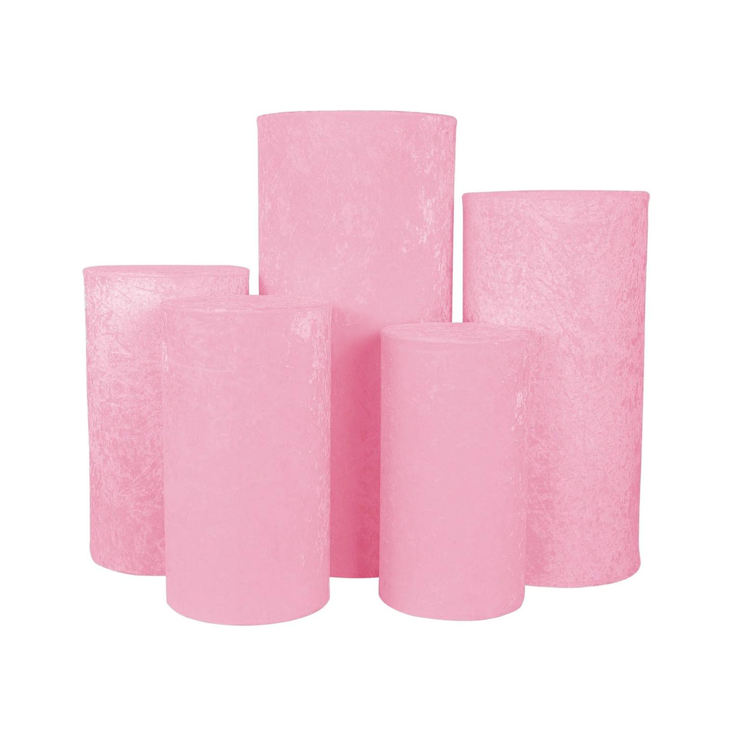 Keep your pedestal and pillar decor minimal and sleek with this spandex cover set. Whether used to cover unsightly surfaces or to add a dash of elegance, these spandex covers will definitely elevate the atmosphere. You can also use them to accentuate the look and feel of cakes, desserts, and pastries. Perfect for weddings, birthday parties, anniversaries, and more. The selection of colors will coordinate with any backdrop or theme, but the pink hue gives them an especially charming look. What's more? The light and durable velvet stretch fabric becomes practically wrinkle-free when stretched so it does not require any ironing, making it the perfect material for repeat use.