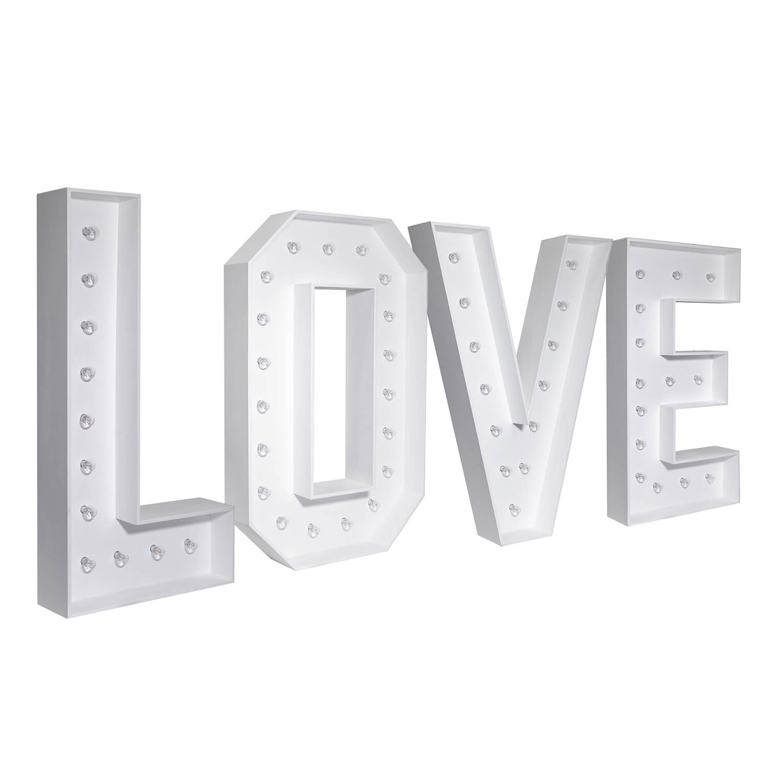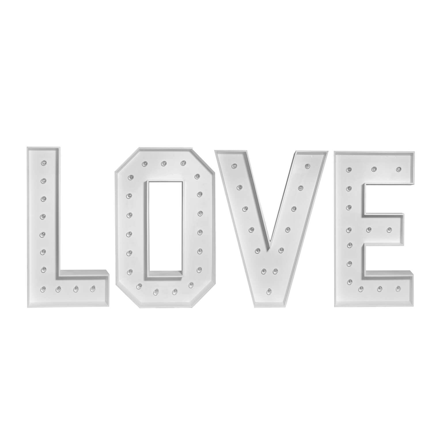 Bring a bit of whimsy and Hollywood glamour to your next event with some marquee letters fitted with warm white, 5 watt, LED, Edison style bulbs on an E12 base. Whether keeping it stately and stand alone or mixing and matching with other marquee letters and numbers to spell out your favorite names, messages, and quotes, you can't go wrong. Each letter connects to an outlet and can be daisy chained together into a single connection. What's better? The bulbs are shatter proof! Planning an event is stressful enough. Rest easy knowing these durable and chic wood marquees are here for the long run.There's also a fold-out support bracket located at the back bottom of each letter to add sandbags for extra stability. Add base or upright for additional support. Love is in the air, why not spell it out?