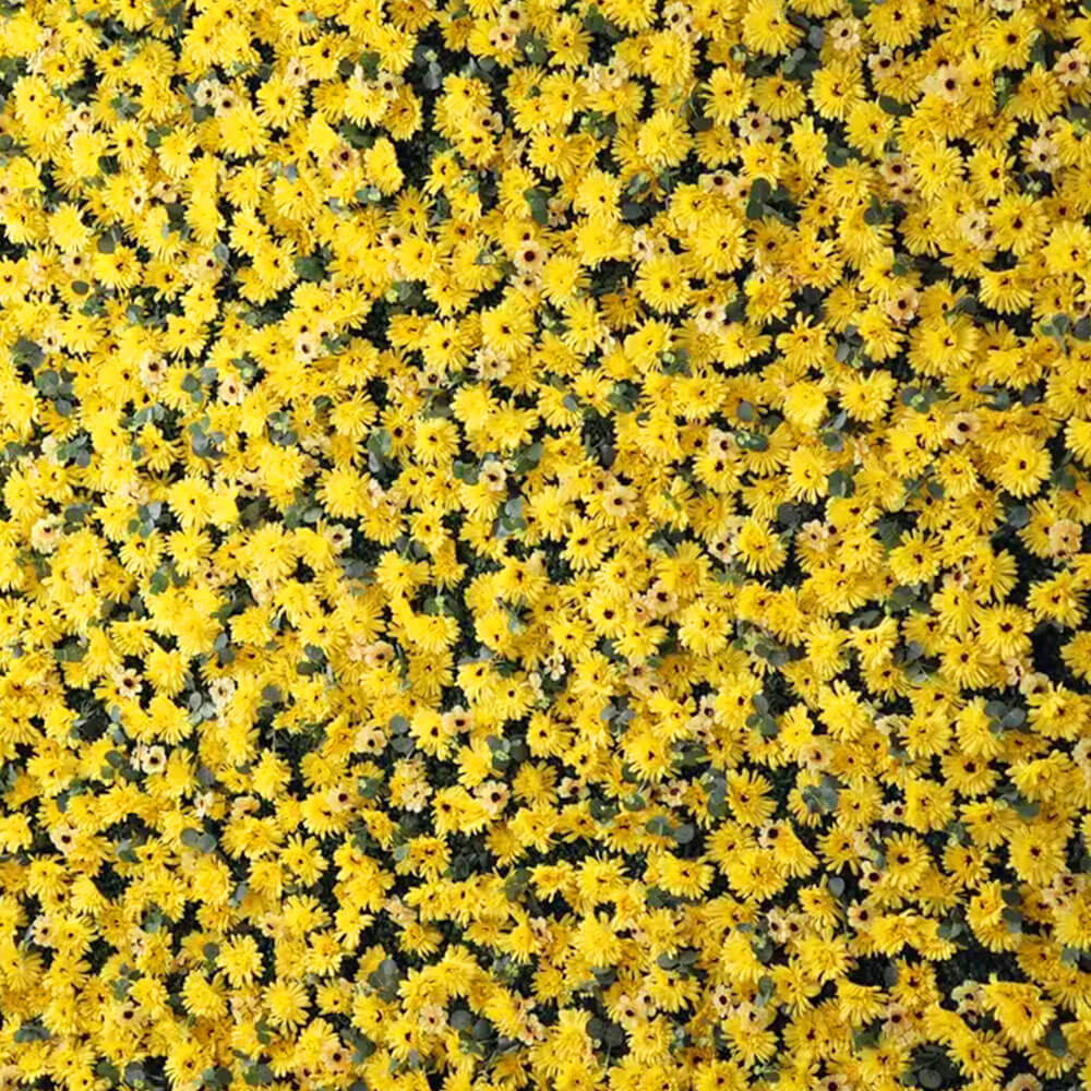 Yellow Mixed Florals & Greenery - Curtain Style Floral Wall - Easy Install! Select Size[MSH-34]